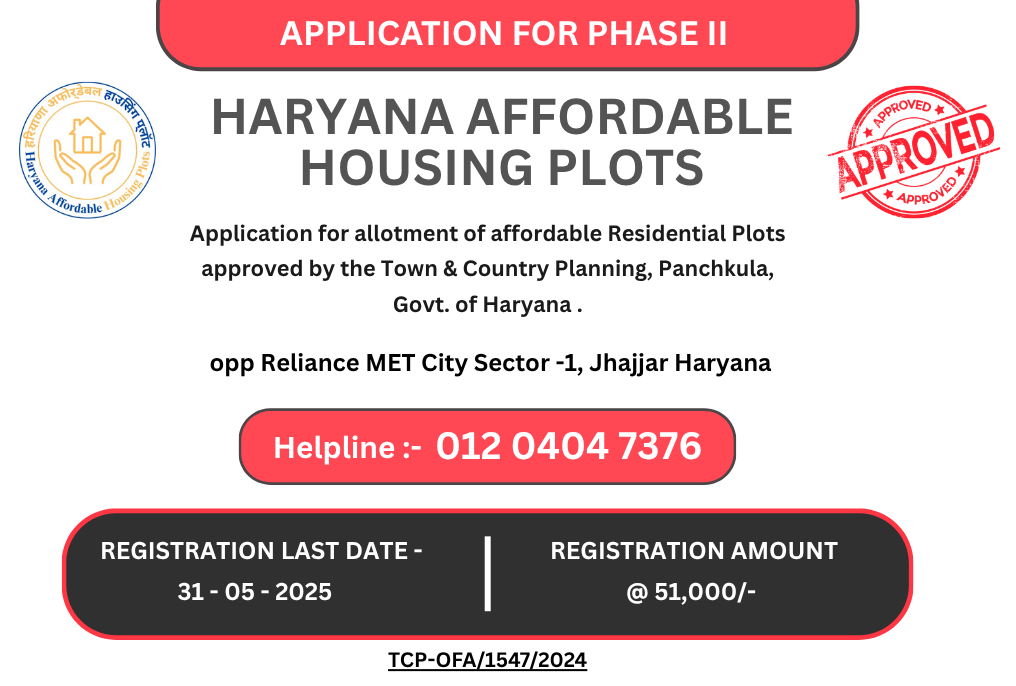 Application Window Open For Haryana DTCP Approved Housing Plot