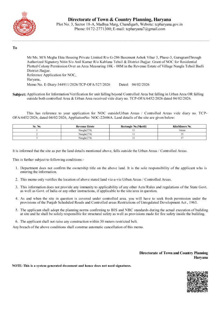 - Requirement: The land must not be situated within a restricted area, or must meet specific criteria if it is, as per the Haryana Development and Regulation of Urban Areas Act, 1975.